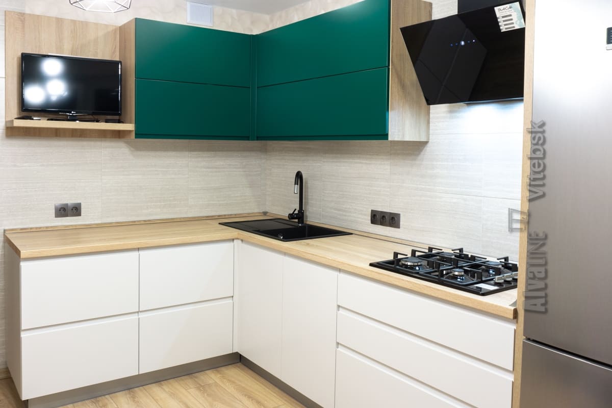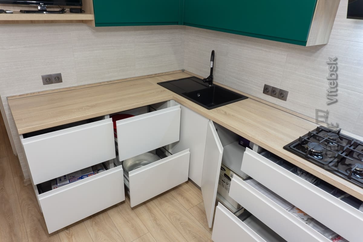 - столешница Egger, Австрия, угловое соединение по "безшовной" технологии, не заметно и полностью защищено от влаги