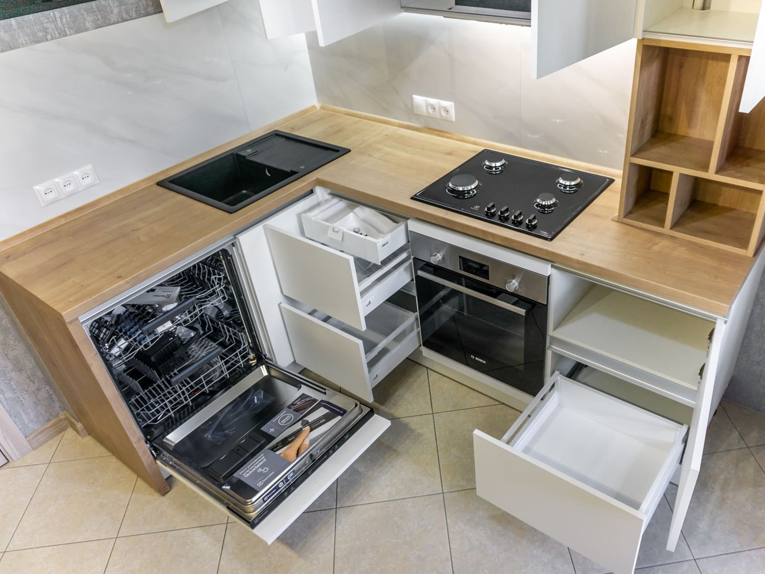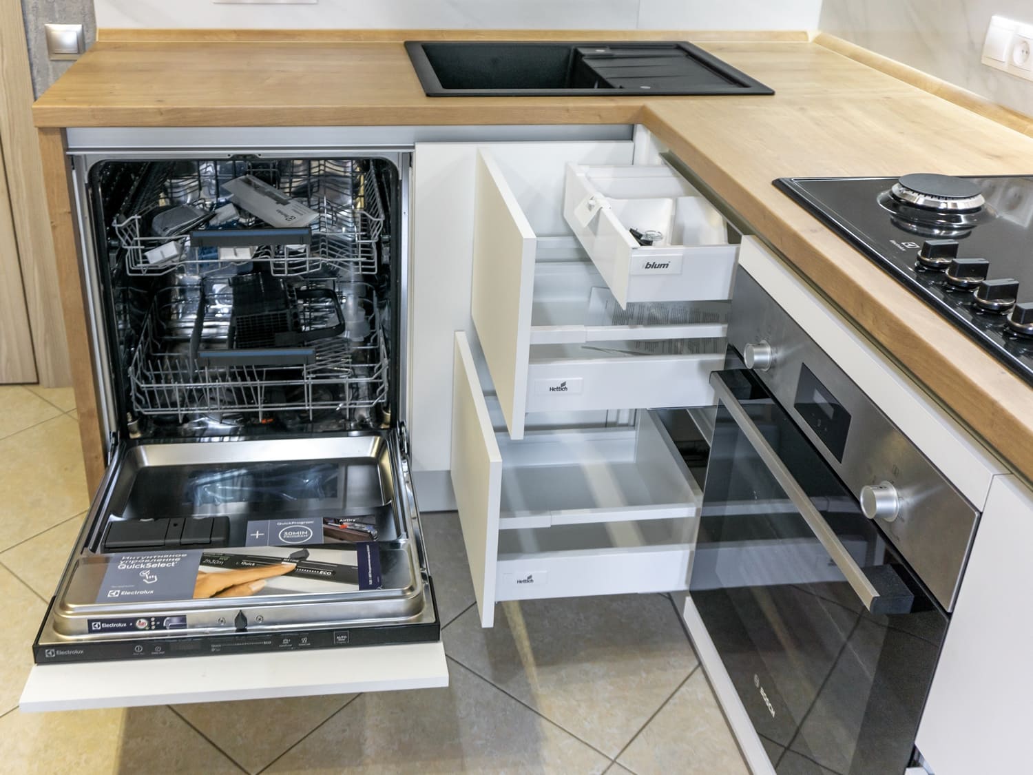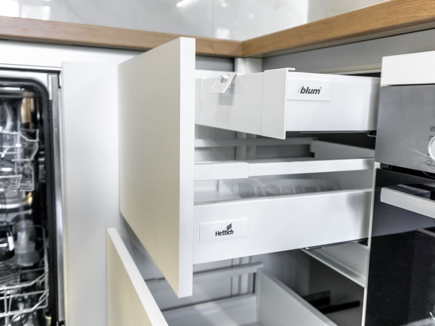 - Скрытый выдвижной ящик Tandembox от Blum, Австрия, открывающийся вместе с фасадом