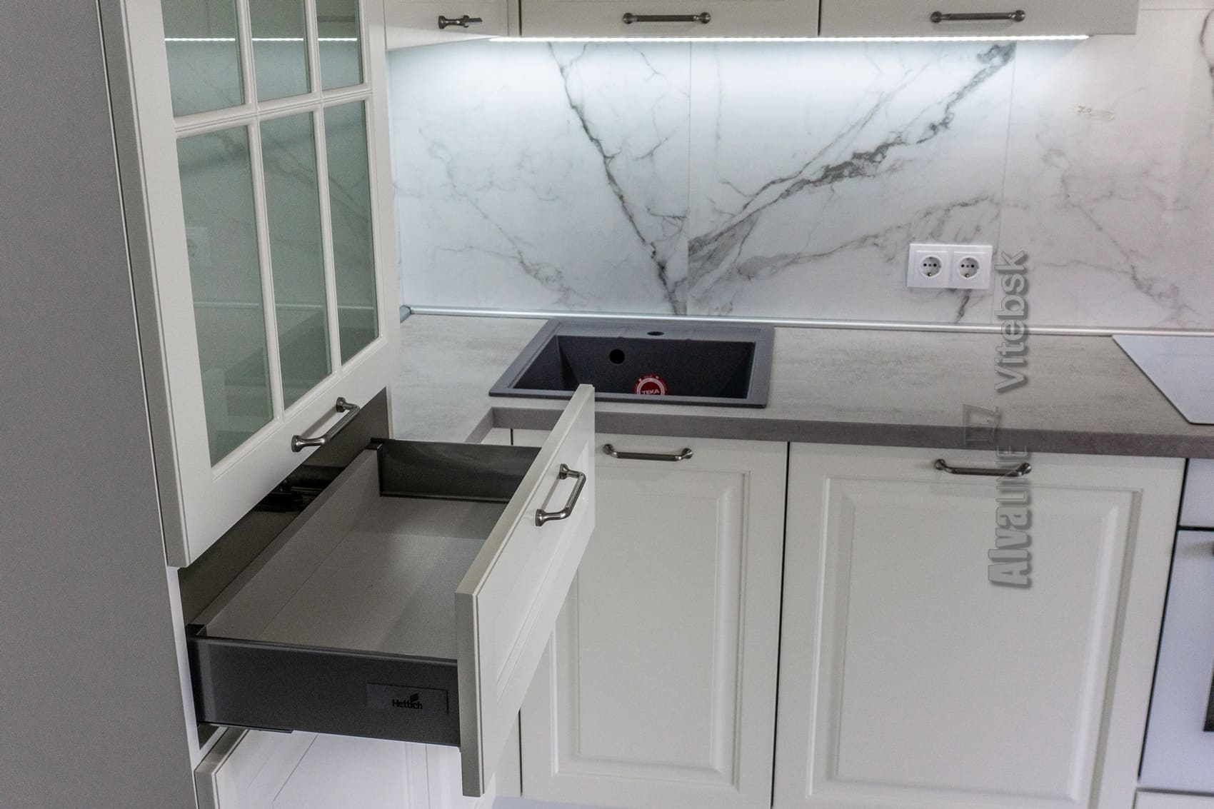 Хотите узнать стоимость аналогичной кухни под Ваши размеры, обратитесь к дизайнерам нашего салона кухни AlvaLine в Витебске за консультацией, они Вам обязательно подскажут идеи и составят реалистичный проект, и конечно же рассчитают цену.