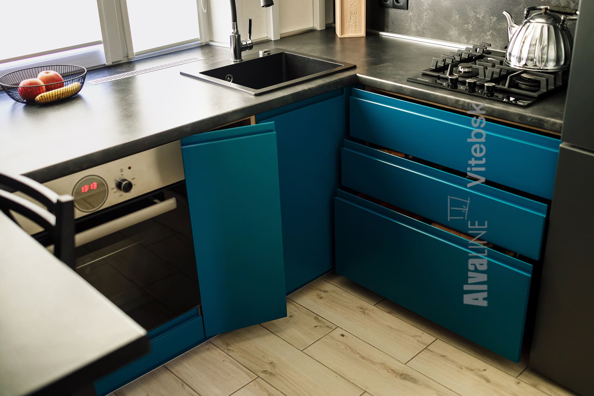 Хотите узнать стоимость аналогичной кухни под Ваши размеры, обратитесь к дизайнерам нашего салона кухни AlvaLine в Витебске за консультацией, они Вам обязательно подскажут идеи и составят реалистичный проект, и конечно же рассчитают цену.