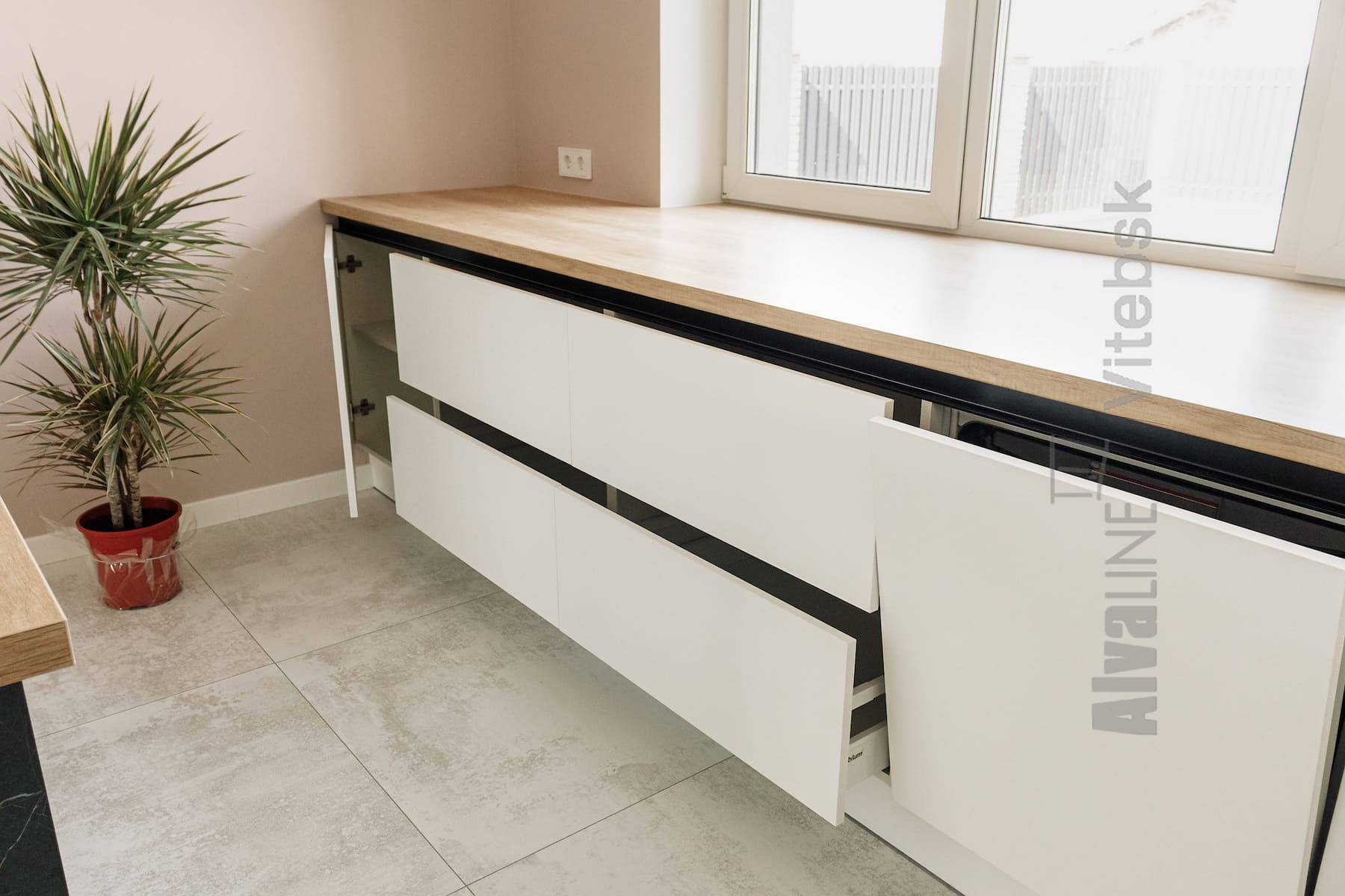 Хотите узнать стоимость аналогичной кухни под Ваши размеры, обратитесь к дизайнерам нашего салона кухни AlvaLine в Витебске за консультацией, они Вам обязательно подскажут идеи и составят реалистичный проект, и конечно же рассчитают цену.