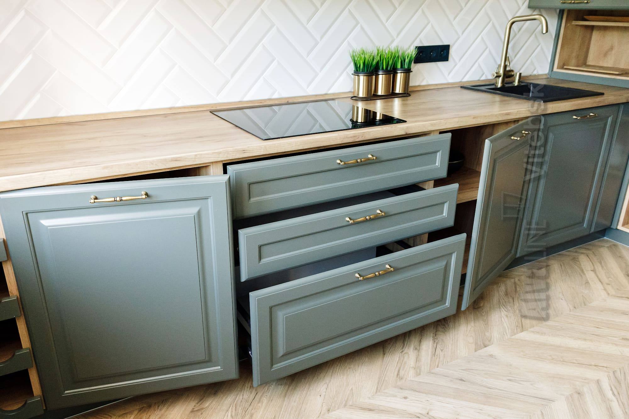 - модель кухни: Europa, МДФ рамочной архитектуры, покрытый цветной матовой эмалью