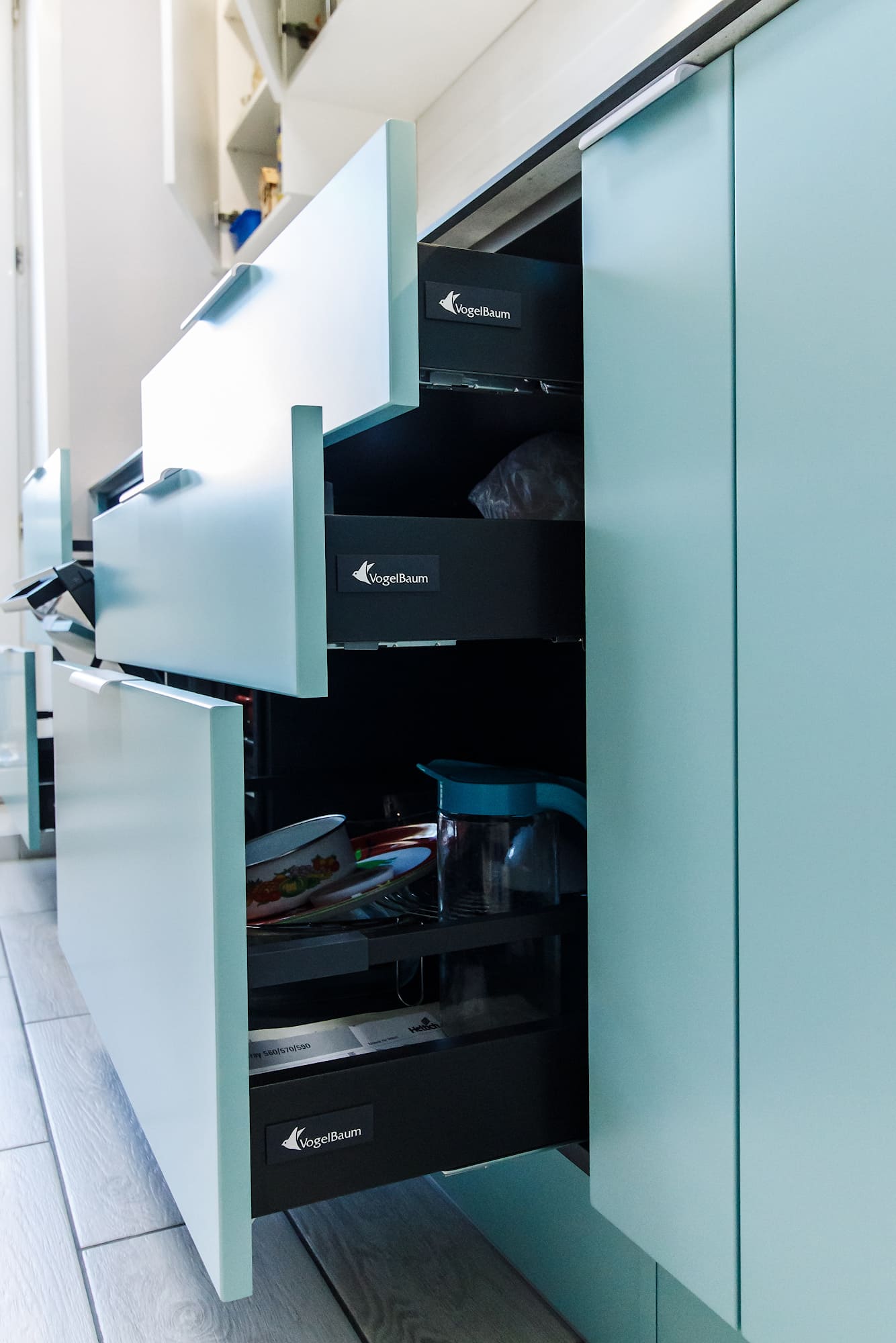 - Петли с тихим закрыванием от фирмы BLUM выдерживают до 200 000 циклов закрывания, обеспечивают плавное закрывание на весь срок службы кухни