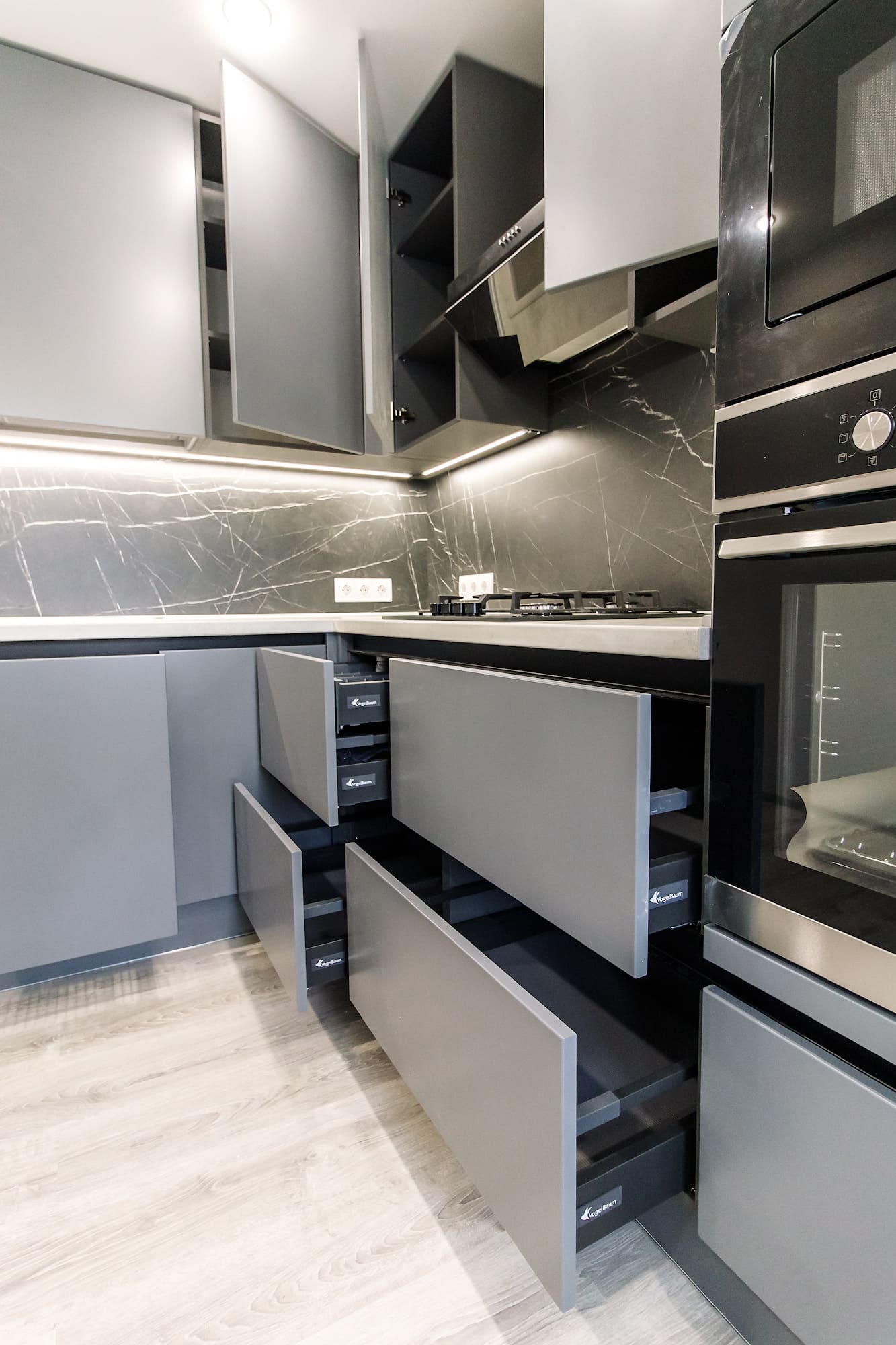 - петли с системой бесшумного закрывания Blumoution, от Blum, Австрия