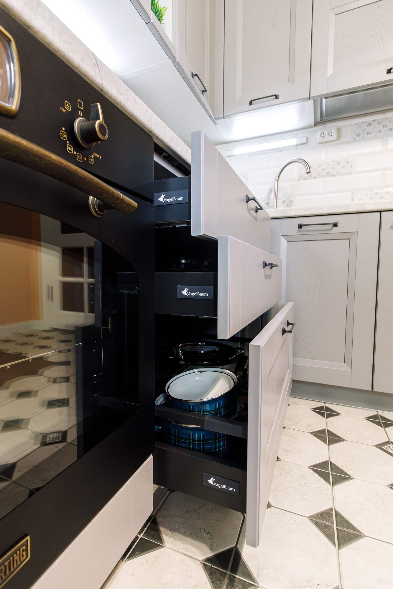 - Выдвижные механизмы Hettich Atira в цвете антрацит.