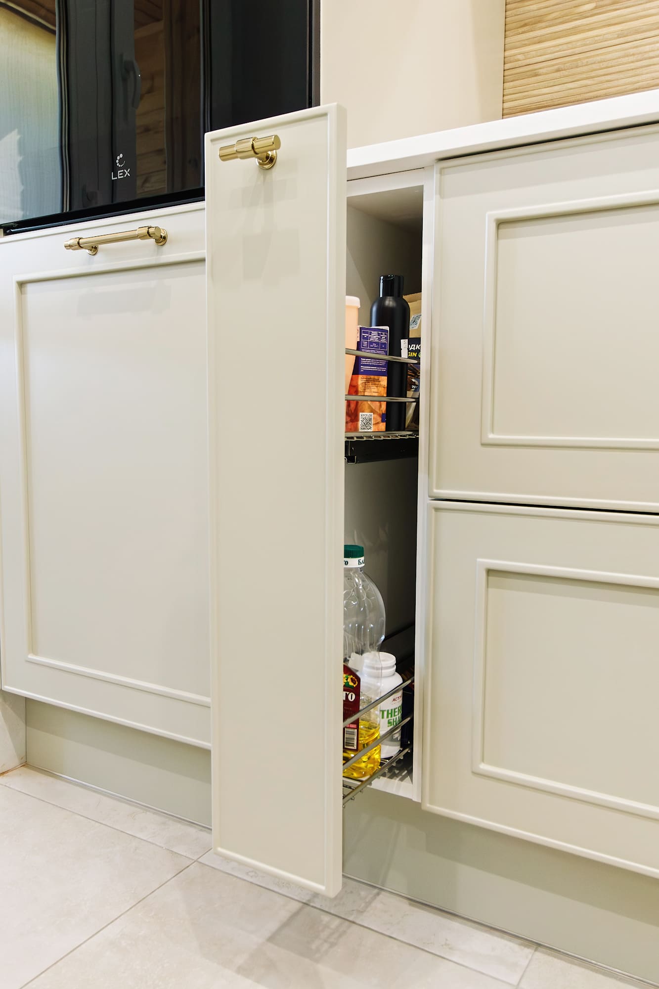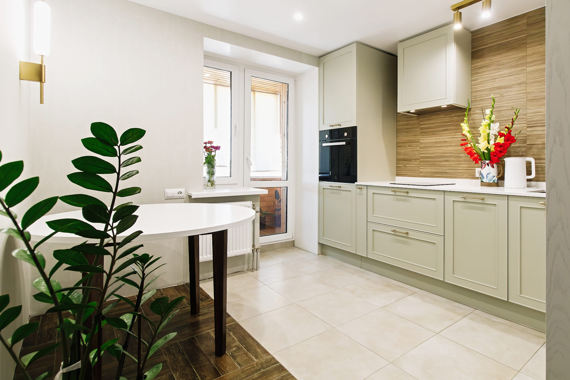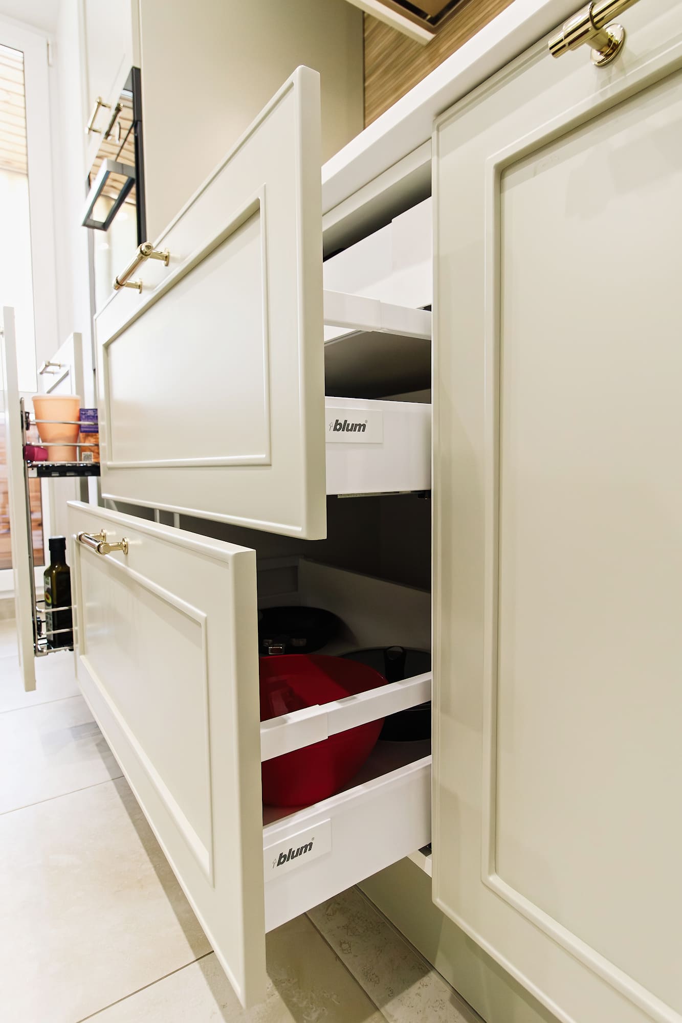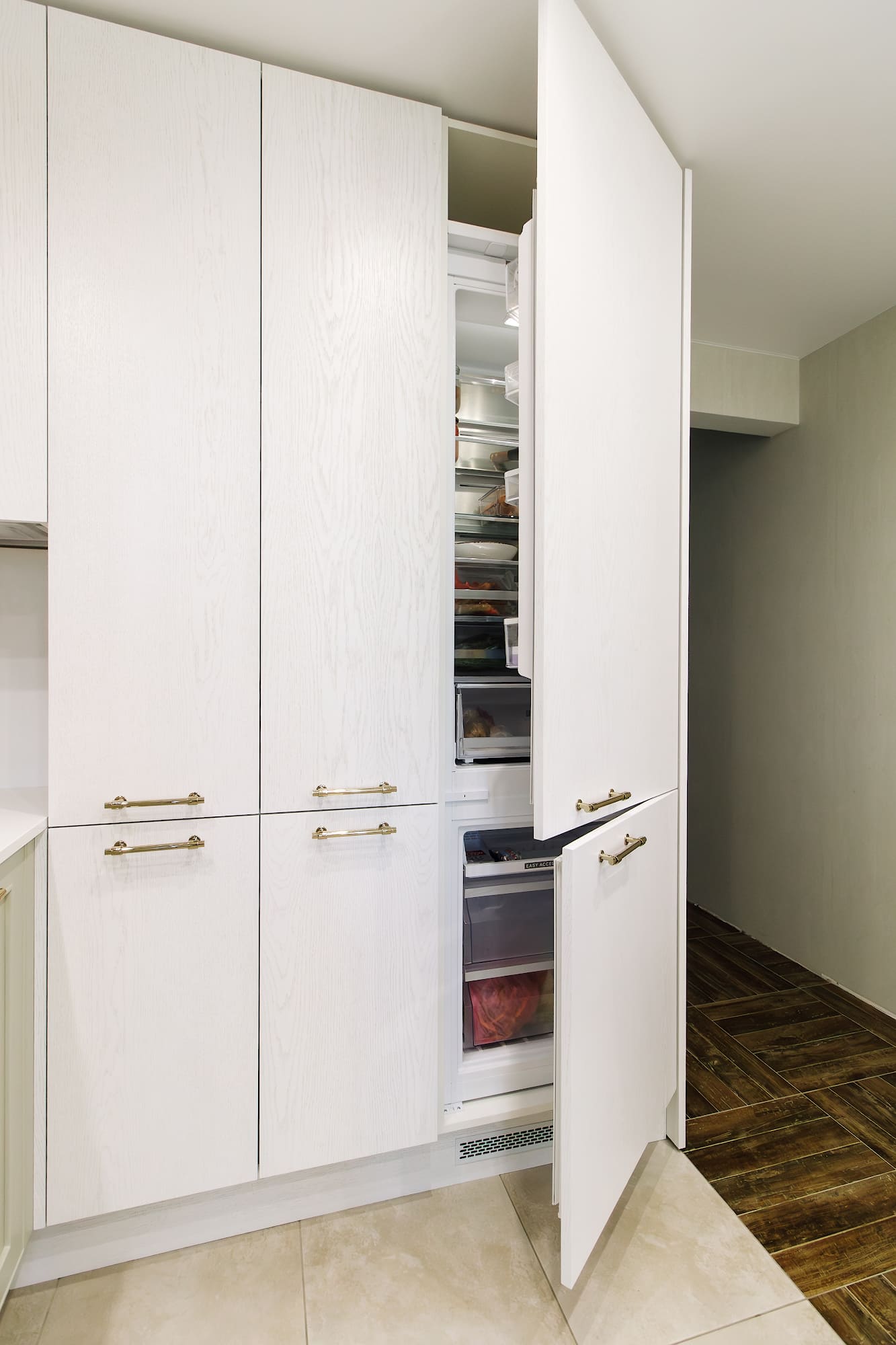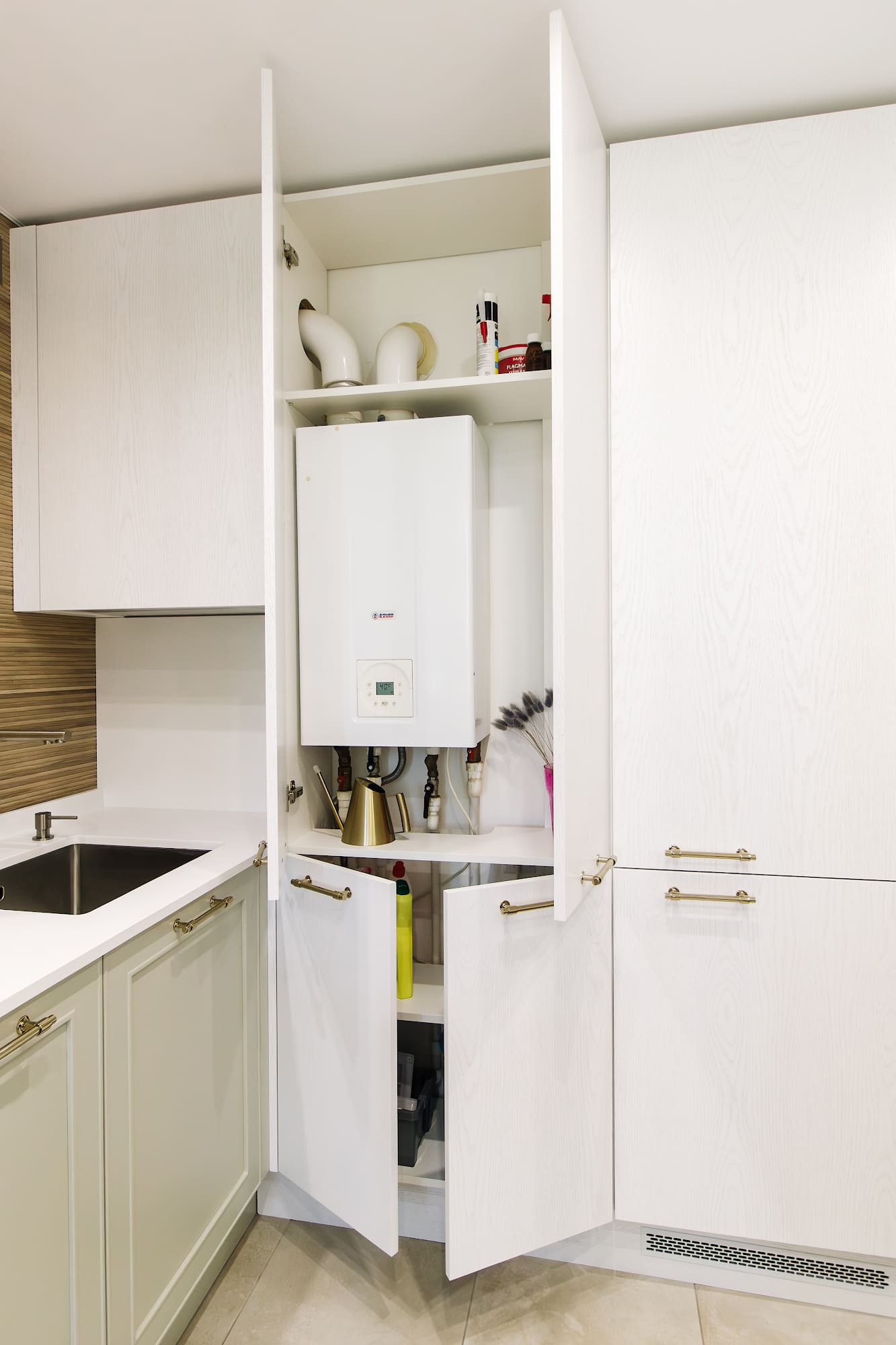 - Материал фасадов — шпон окрашенный в нежный, зеленоватый оттенок.