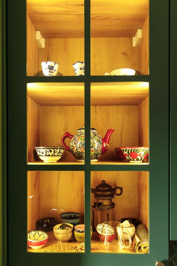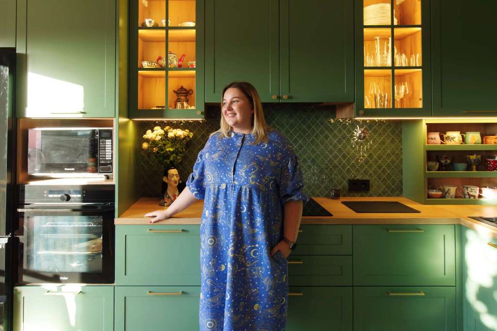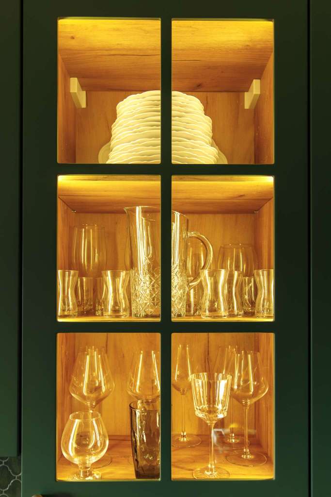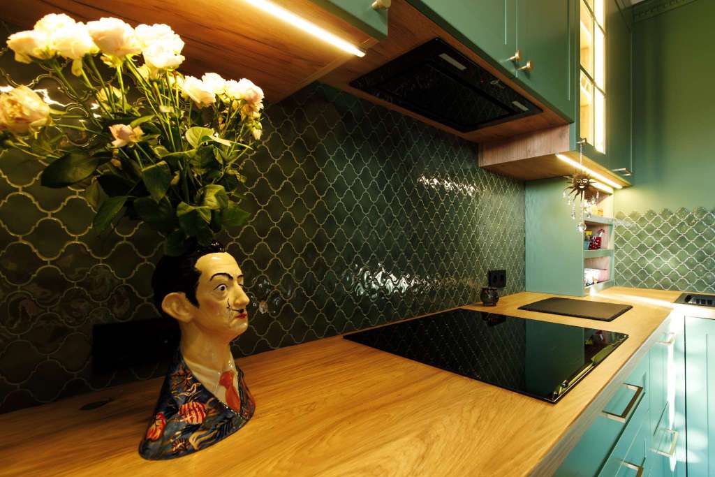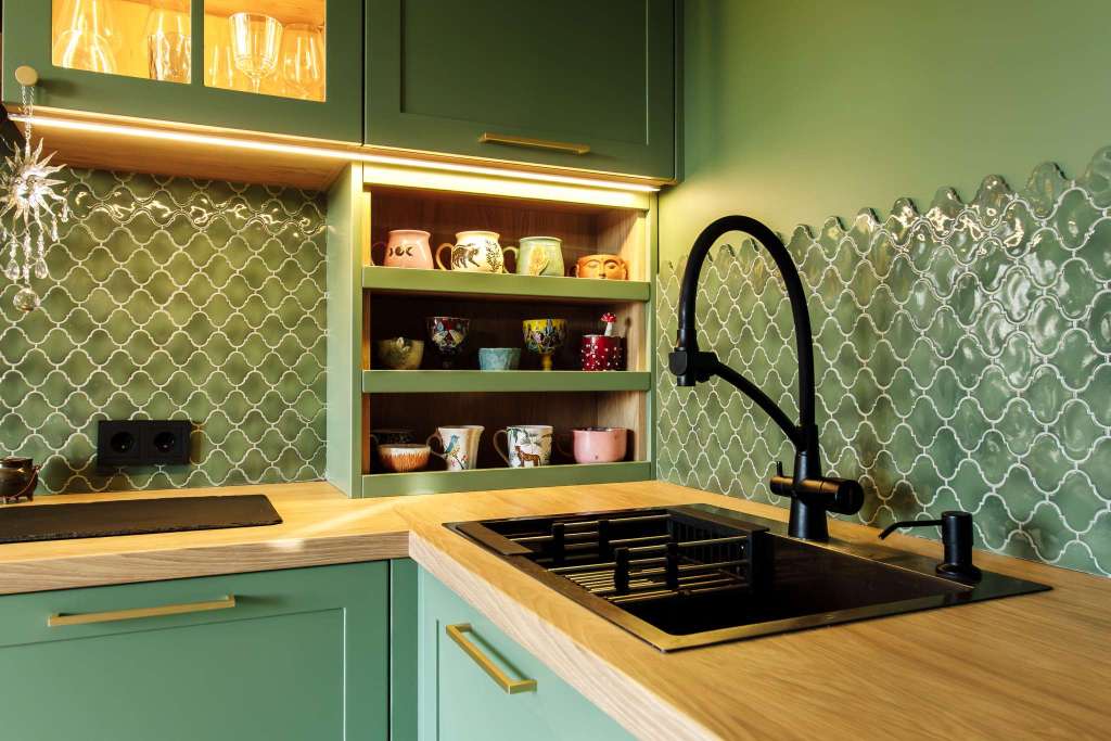 - Лаконичные фасады в необычном зелёном цвете.
