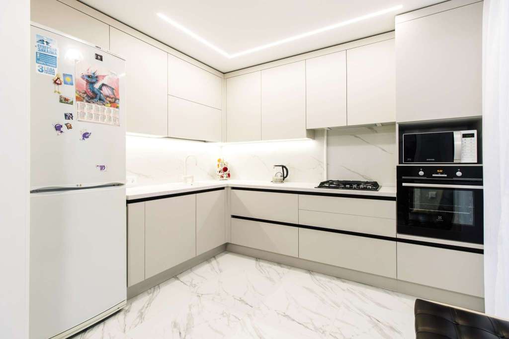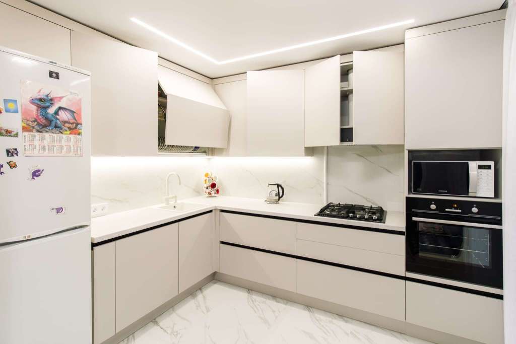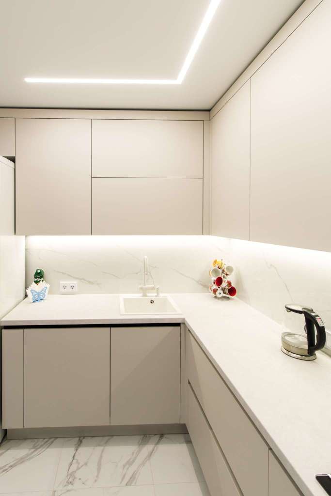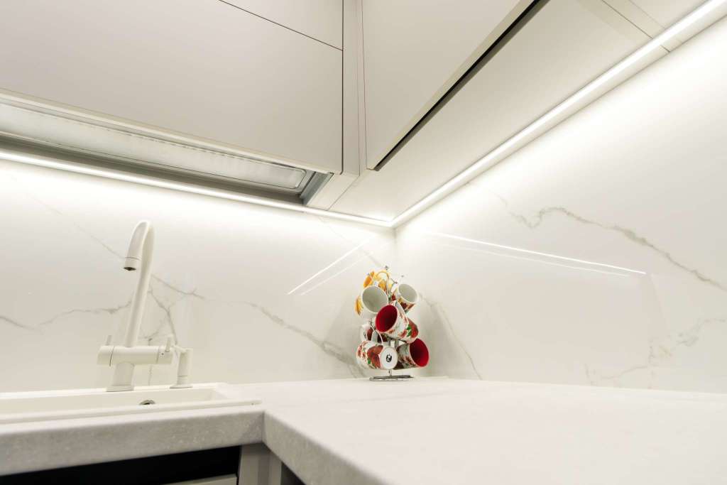 - Ручки в нижней базе — Gola-профиль — скрытые, что делает дизайн еще более минималистичным и чистым.