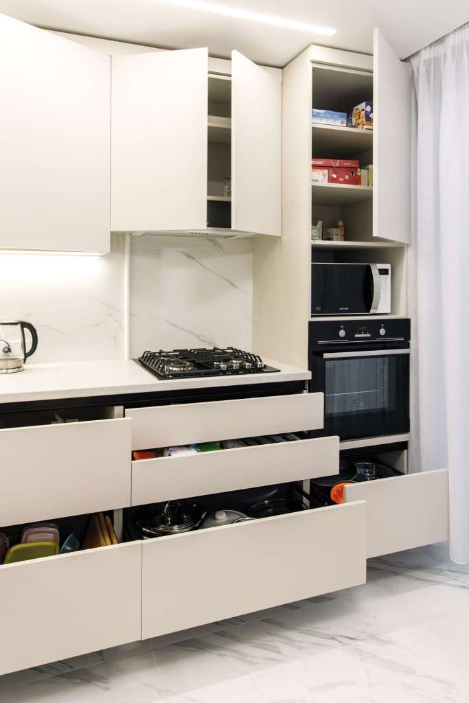 - Карго и сушка (Италия) — высококачественные механизмы, которые обеспечат удобство хранения и доступа ко всем кухонным принадлежностям.