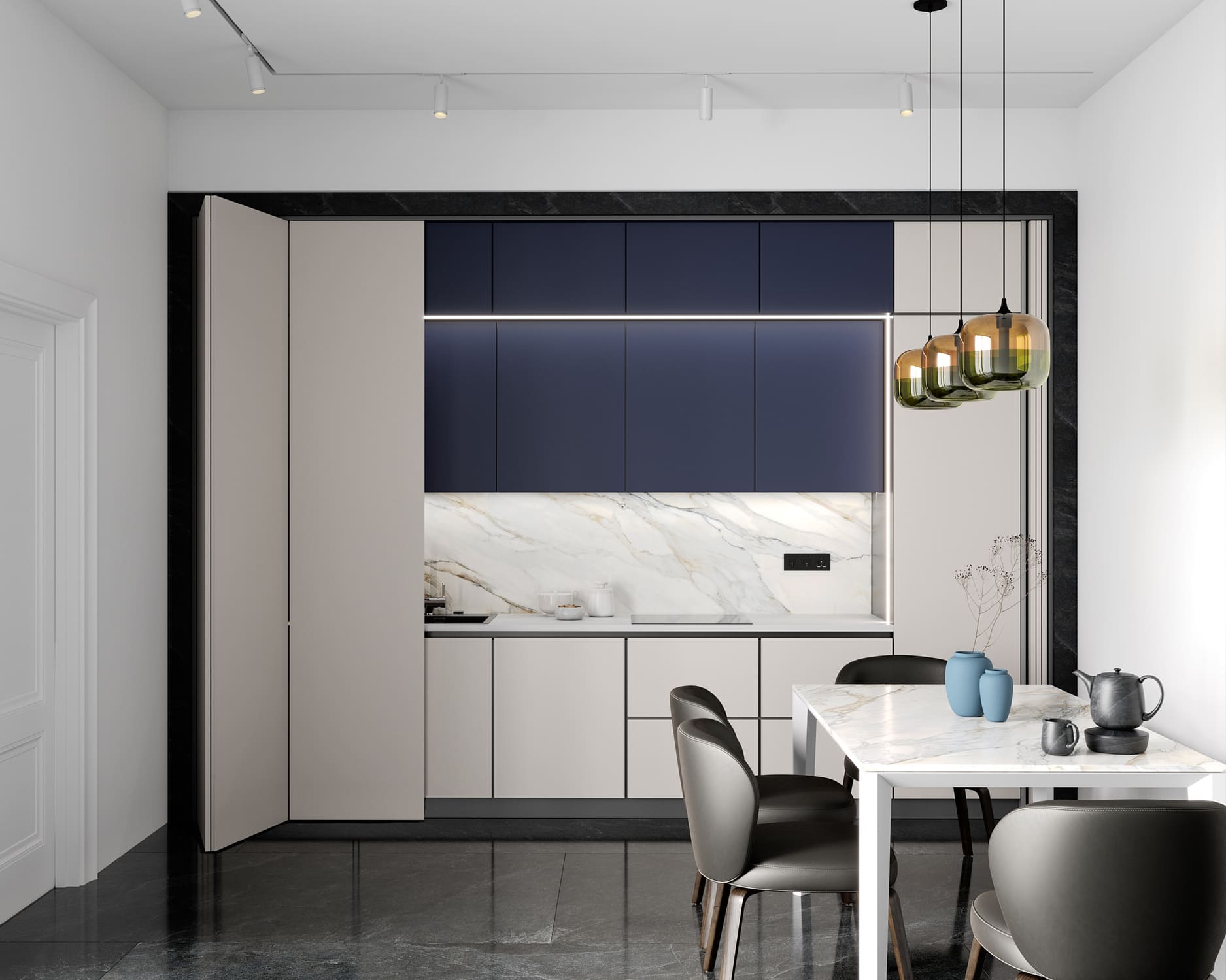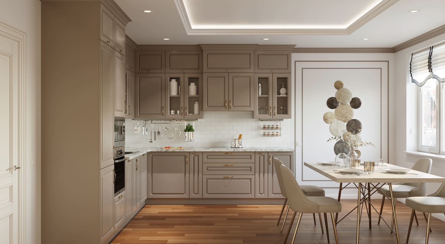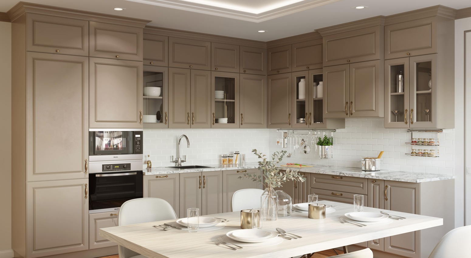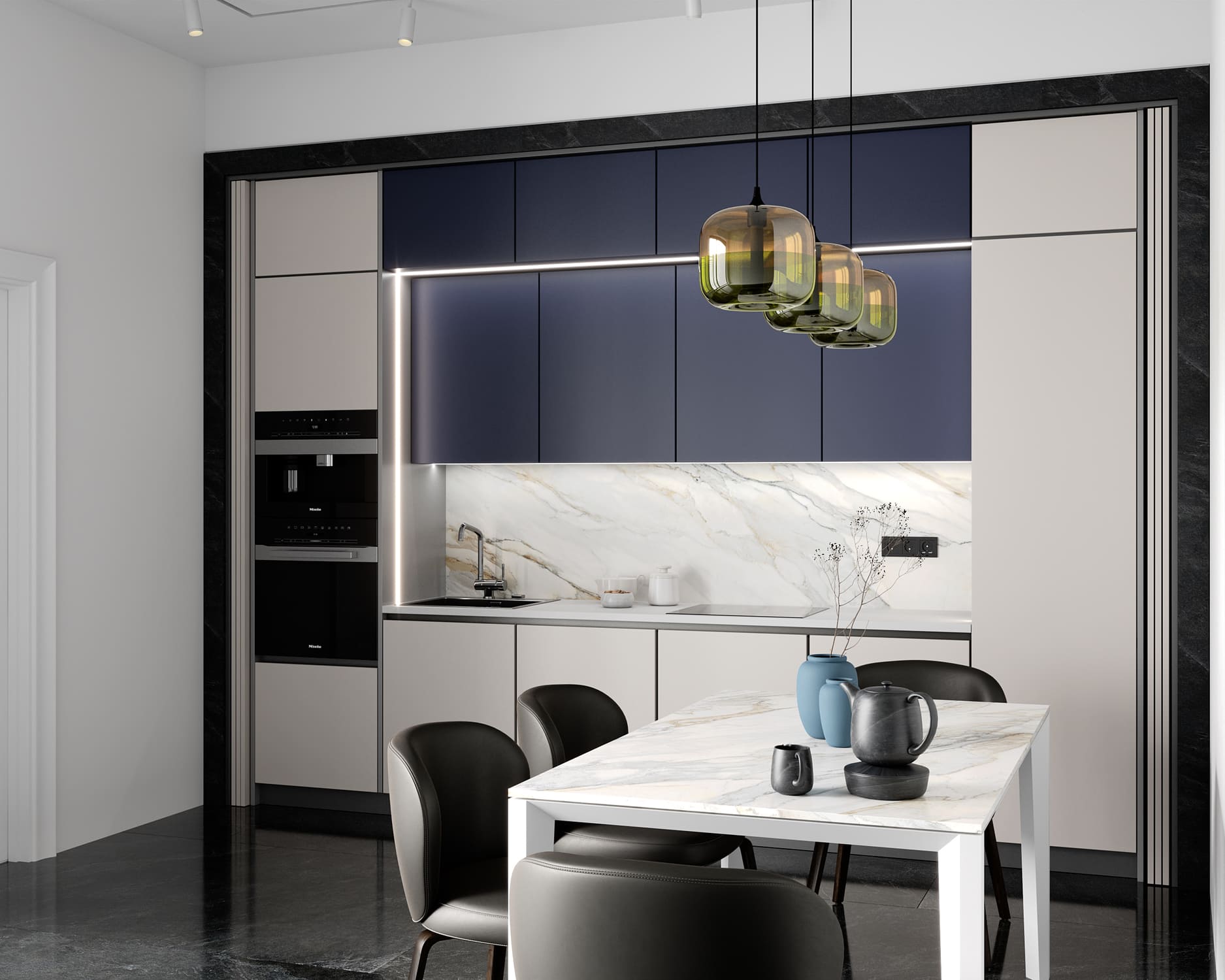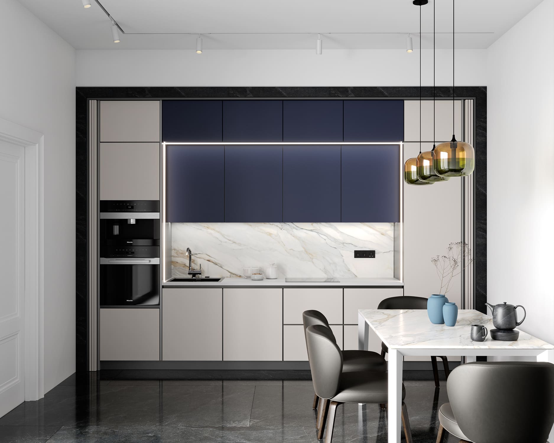 Уникальная кухня с эффектной фрезеровкой на фасадах.