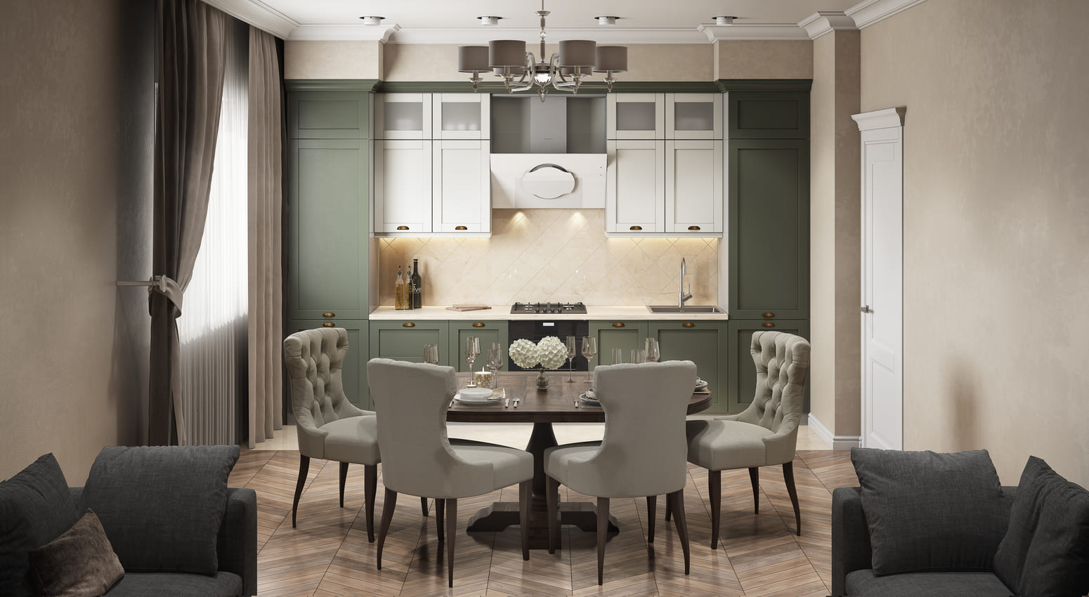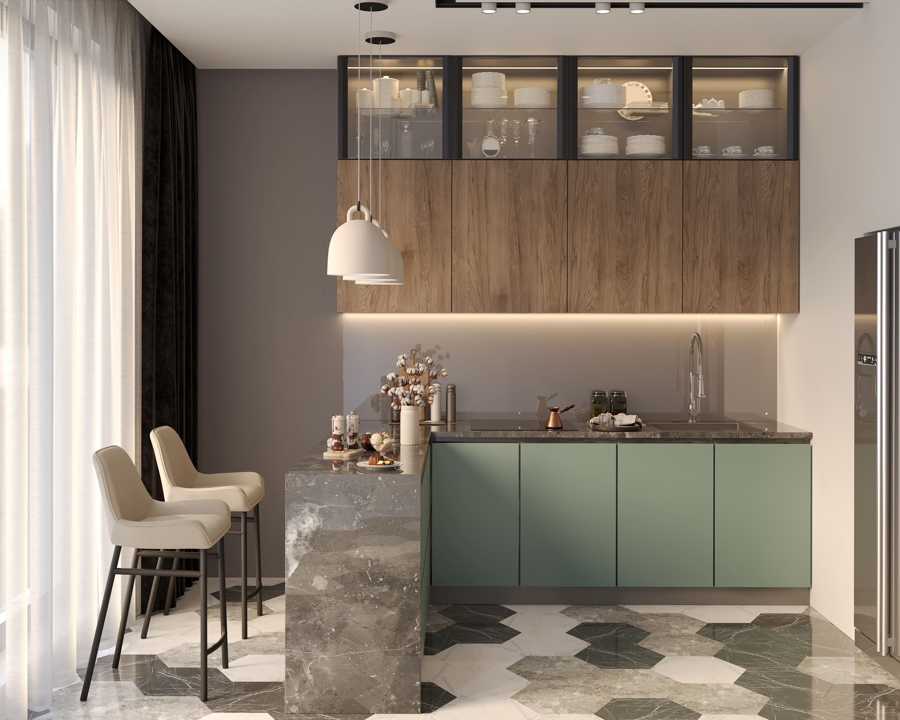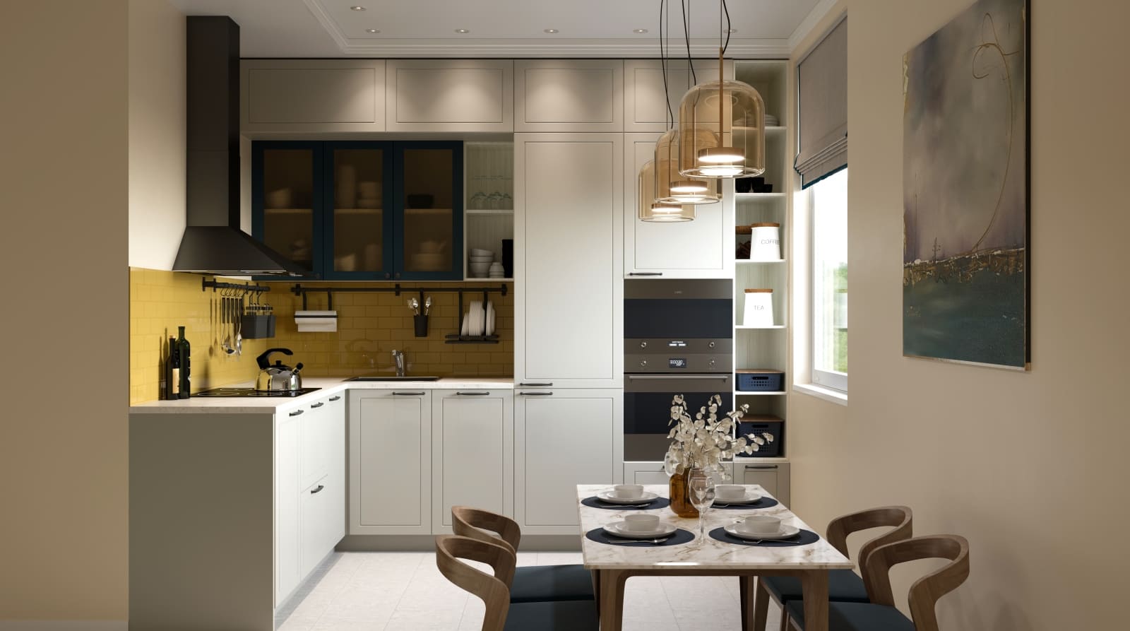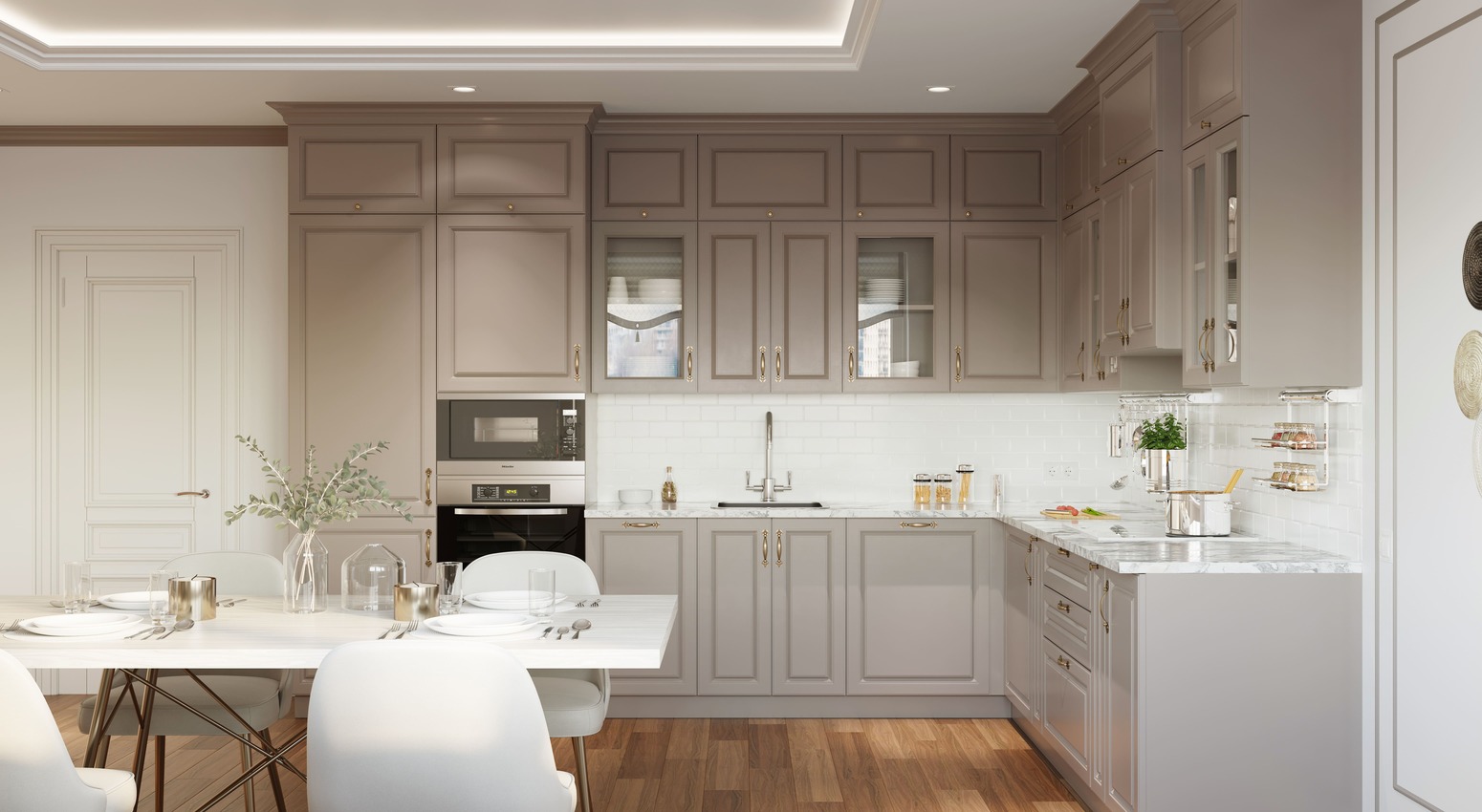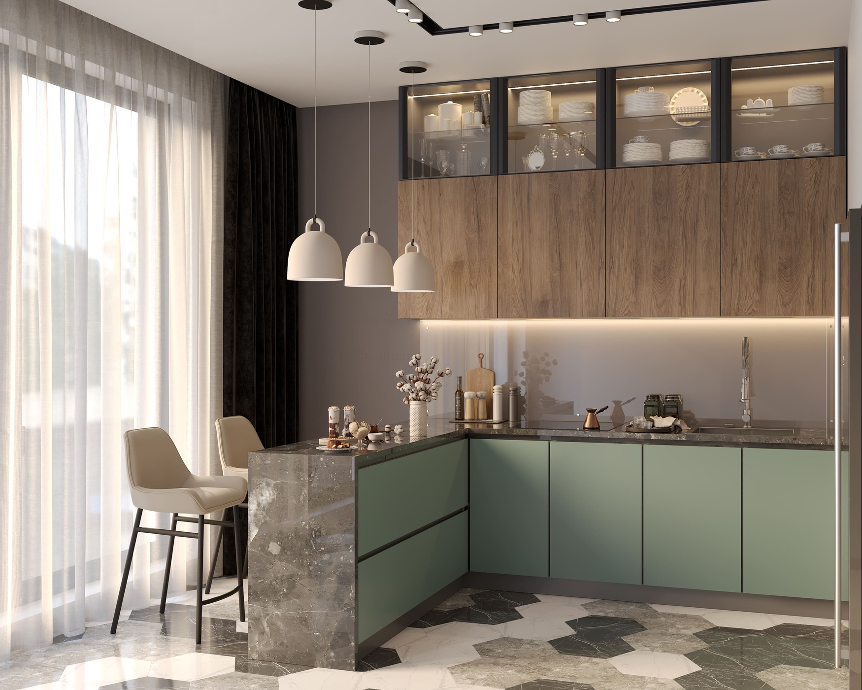 Уникальная кухня с эффектной фрезеровкой на фасадах.