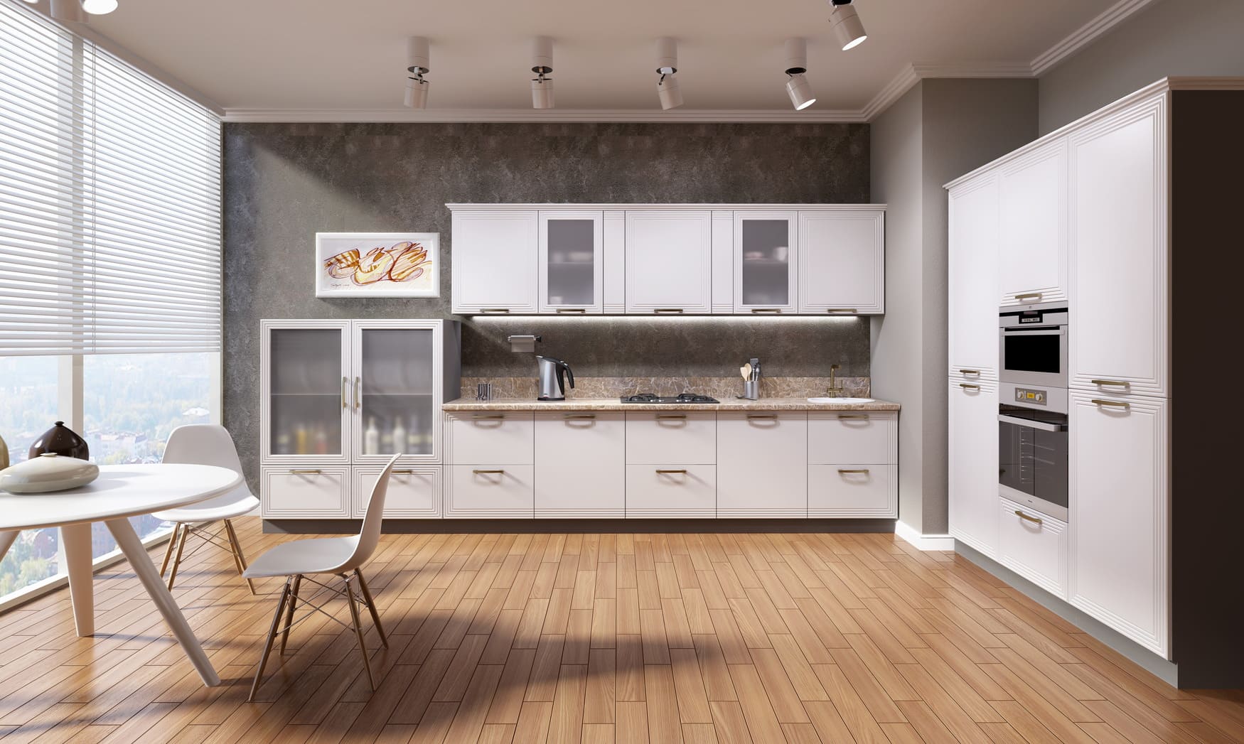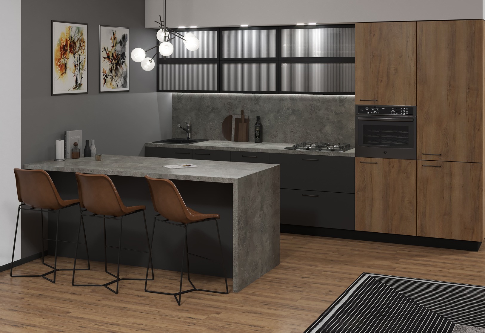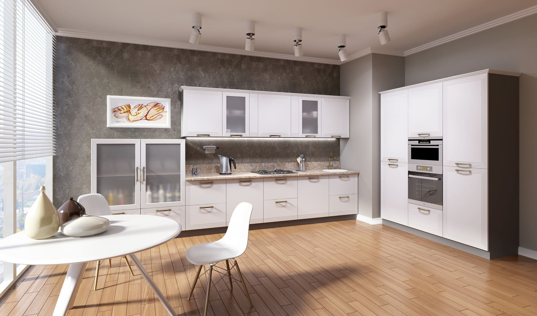 Геометрически правильный повторяющийся рисунок, строгость параллельных линий… это кухня, на которой царит Порядок. Аккуратность. Завершённость. Так, как нужно именно Вам – в любом из более чем 2500 цветов по каталогам RAL и NCS, с набором элементов, подходящих именно Вашей кухне. И всё это – по действительно доступным ценам. Готовы?