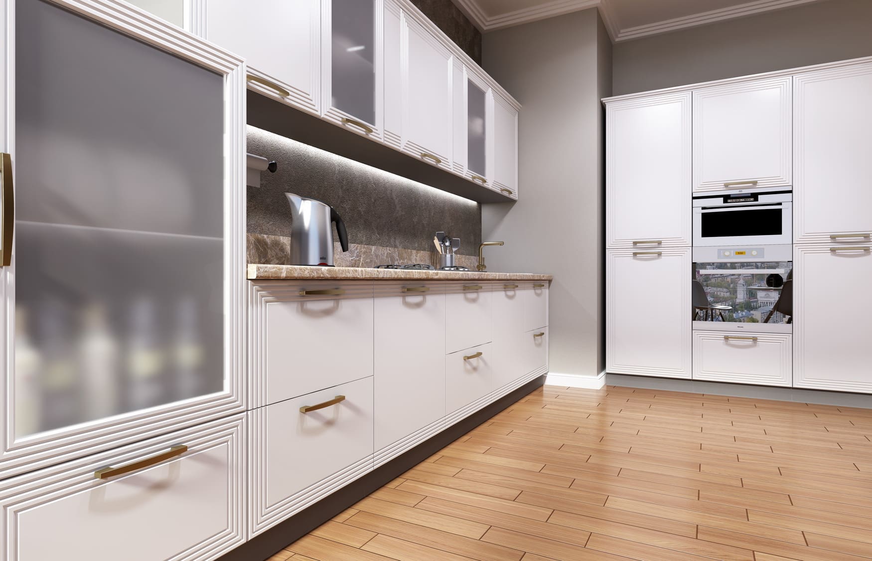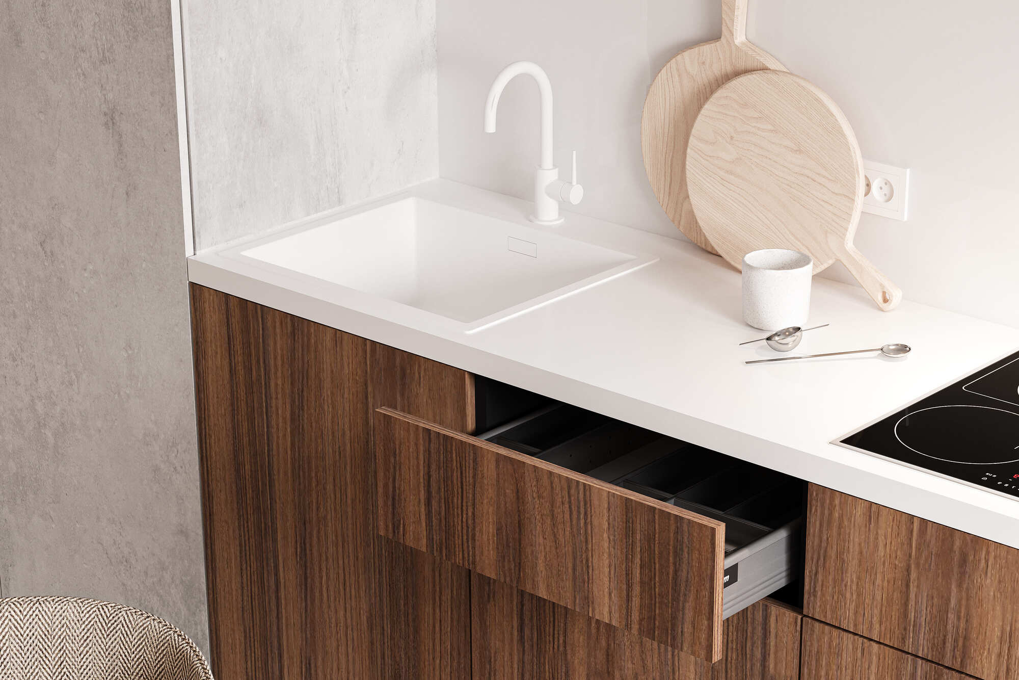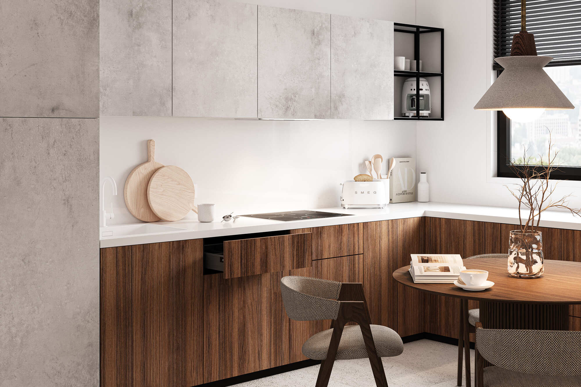 Геометрически правильный повторяющийся рисунок, строгость параллельных линий… это кухня, на которой царит Порядок. Аккуратность. Завершённость. Так, как нужно именно Вам – в любом из более чем 2500 цветов по каталогам RAL и NCS, с набором элементов, подходящих именно Вашей кухне. И всё это – по действительно доступным ценам. Готовы?