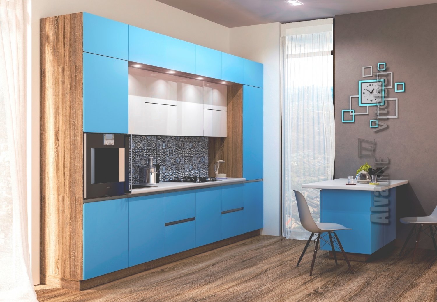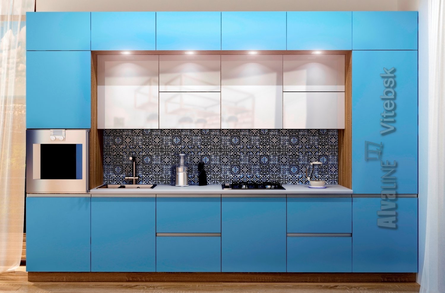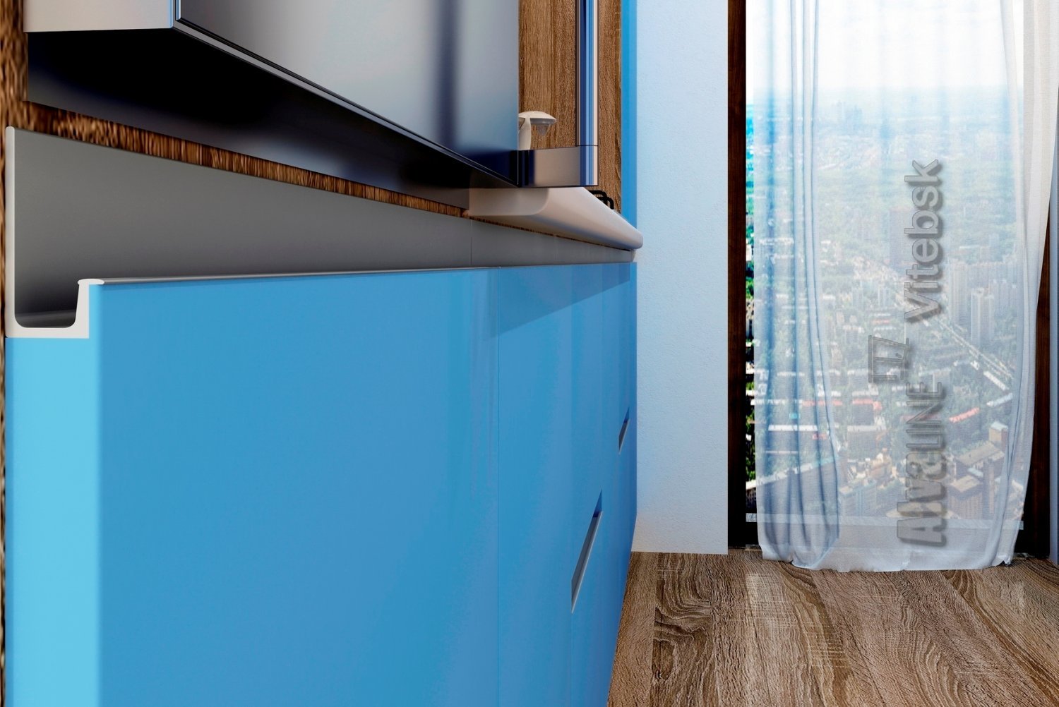 Cочетает в себе достоинства популярных моделей кухонь AlvaLine и при этом является оригинальным воплощением современных актуальных тенденций мебельной моды. Ручка интегрирована в торец фасада и выполнена из алюминия.