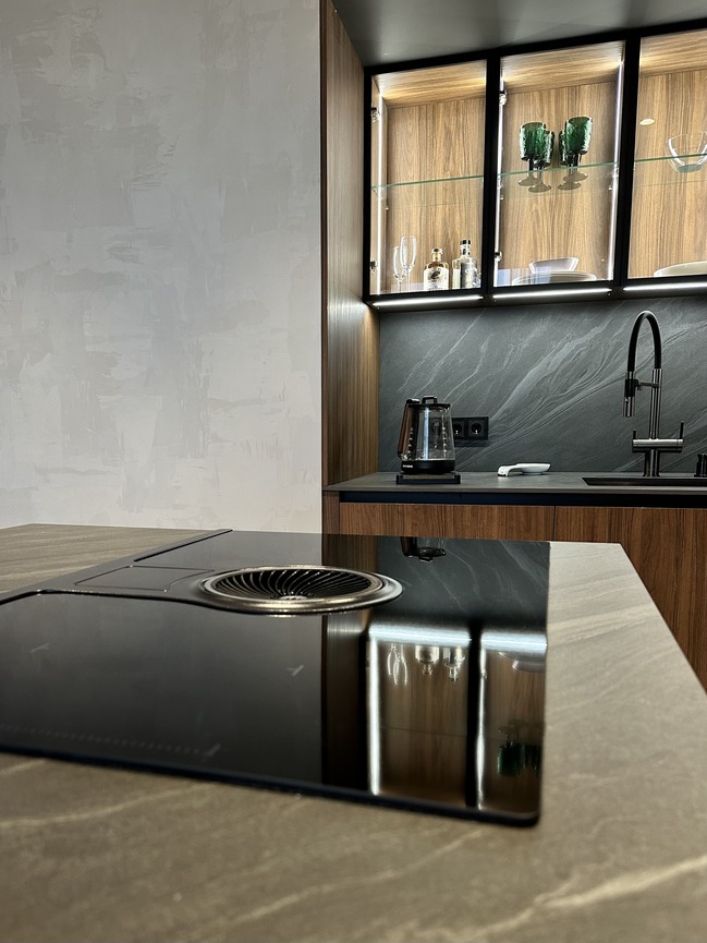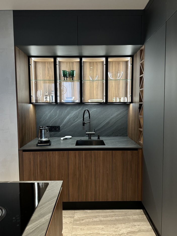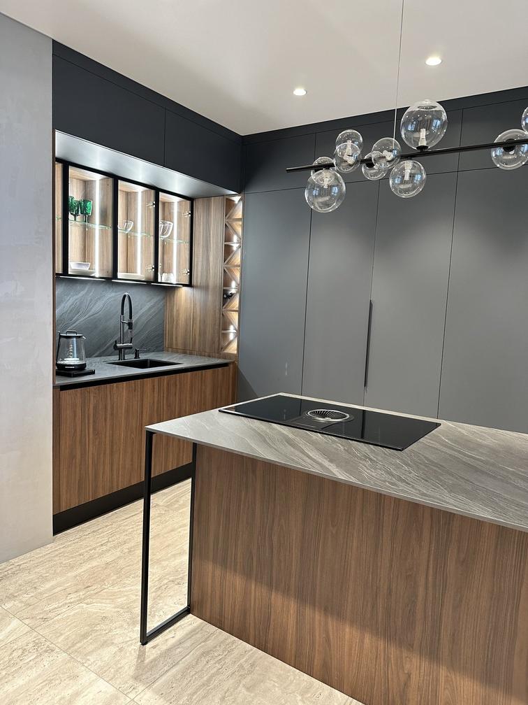 Высокотехнологичная кухня Mirella LUX с фасадами точно повторяющими натуральные материалы.