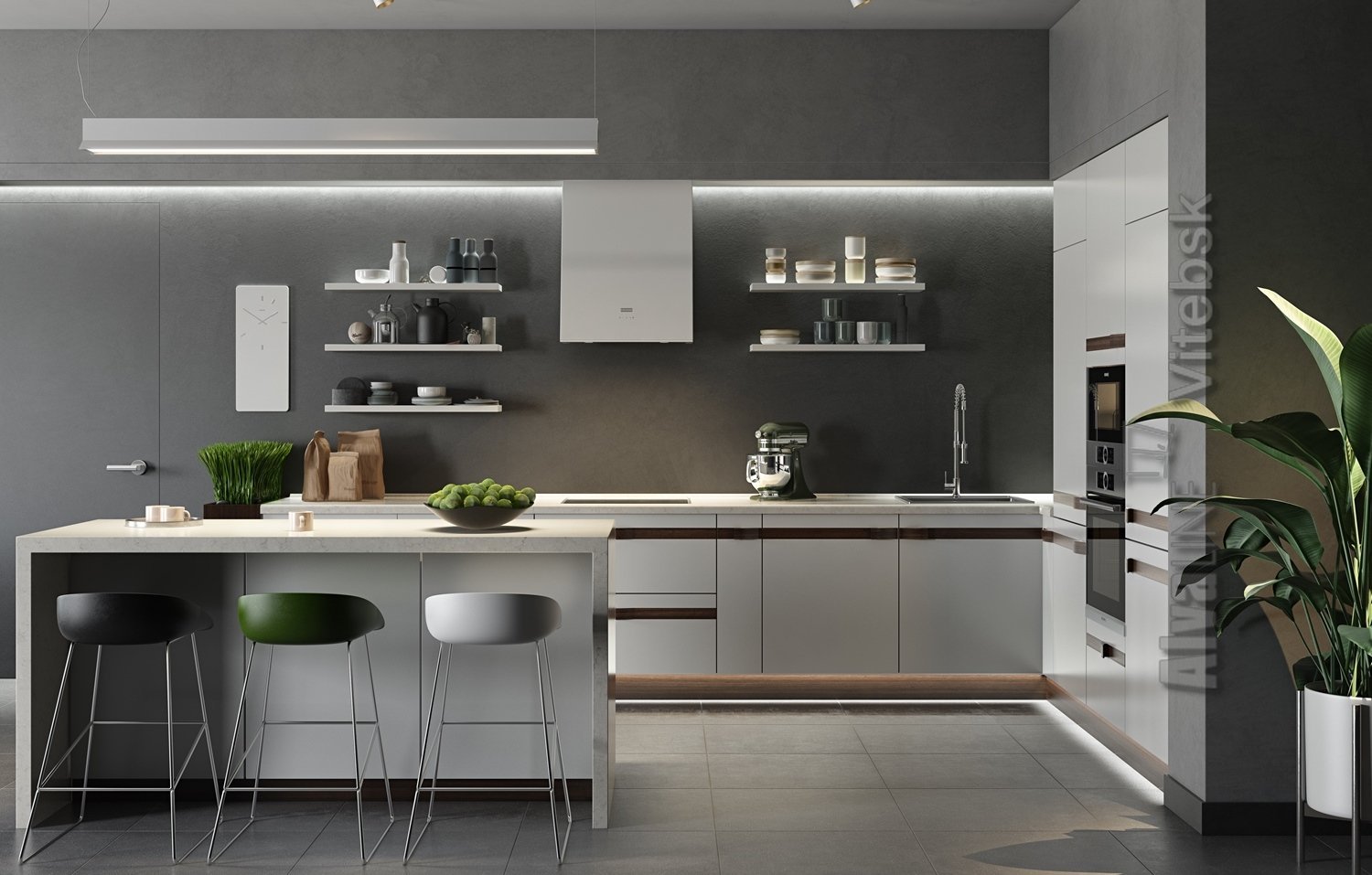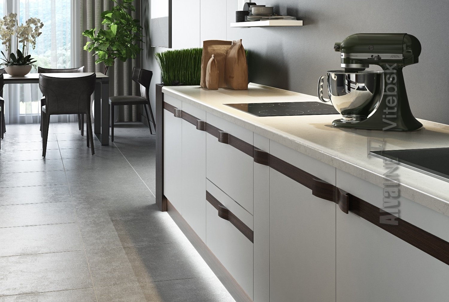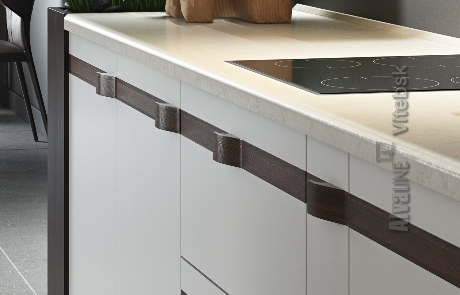 Сочетание крашенного фасада с интегрированным декором из натурального натурального дерева